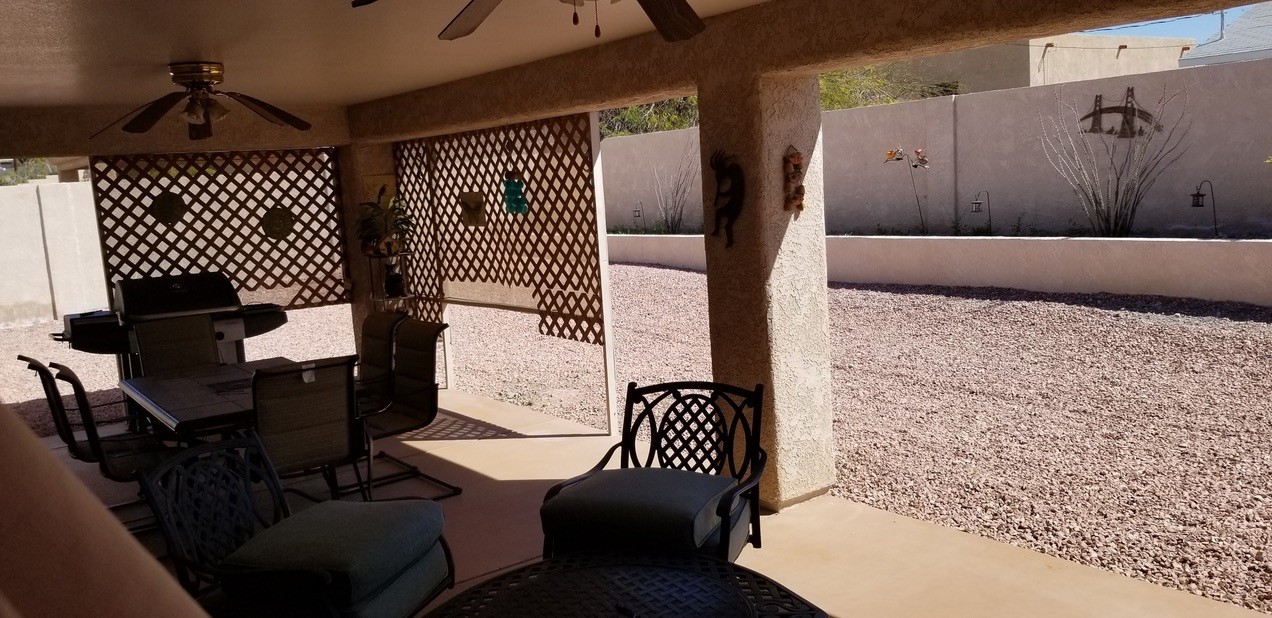 Available March 2026-April 2027 4 month minimum. Gorgeous home located on the North side of Havasu. Fully furnished Winter rental and turn key ready! Large kitchen with granite counter tops and open floor plan to dining room. Vaulted ceilings in kitchen and living room. Living room with plenty of sitting room and fireplace. Large master bedroom with large master bathroom! Separate jacuzzi tub and tiled walk in shower. Back patio access from Master bedroom. Spare bedrooms are also very spacious! Nice decor through out the home. 1 bay available the in garage. Walled yard with a large covered patio to enjoy those nice Havasu days. Patio furniture and grill available.. no pets, $100 cap on electric, includes cable & internet, 2008 sqft, built in 2006. we require an application prior to showing. You can apply online at www.havasurentalhome.com For more information ask for Liela.