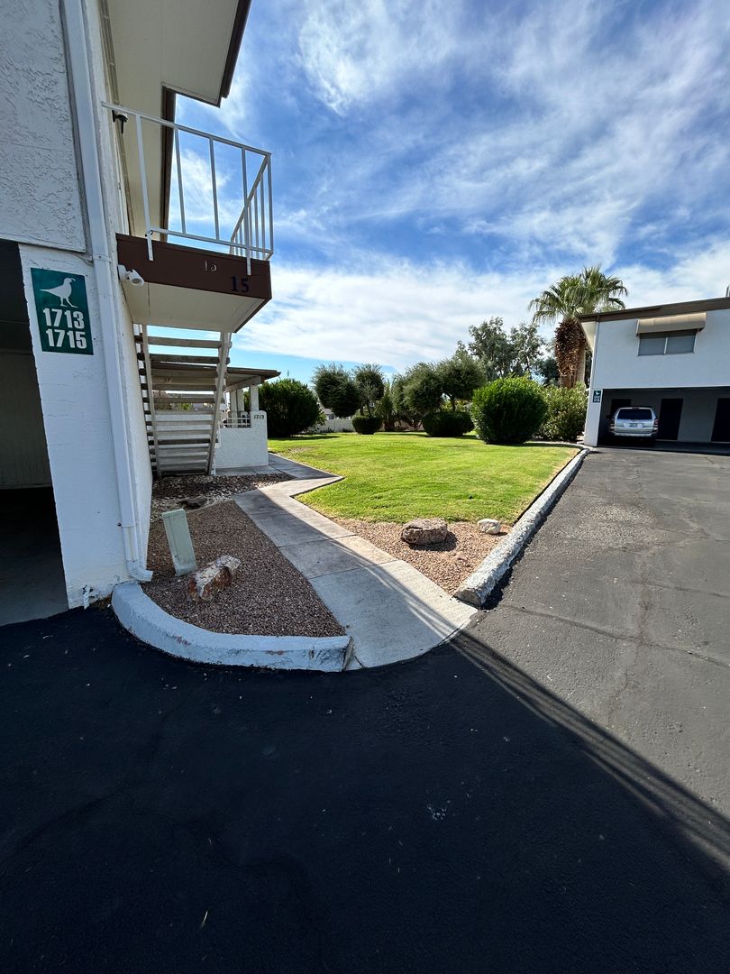 Available December 15th. Location, location, location! This charming two-bedroom, one-bath condo is conveniently situated just blocks from the iconic London Bridge, the sparkling lake, the bustling channel, and Havasu's Rotary Park. All the shops, restaurants, and amenities you desire are just moments away. The community pool is only steps from your door, making it easy to cool off on warm days. The complex grounds are beautifully manicured, featuring lush green grass and trees. Plus, the community is located on a bike and walking path making it easy to explore the area. The property includes a 20ft carport, additional guest parking, and a storage area for bikes, kayaks, and more. It also features a coin laundry room right at the bottom of your stairway for convenience. No Pets! We require an application prior to showing. Apply online at havasurentalhome.com For more details call Kim @ 928-486-1115.