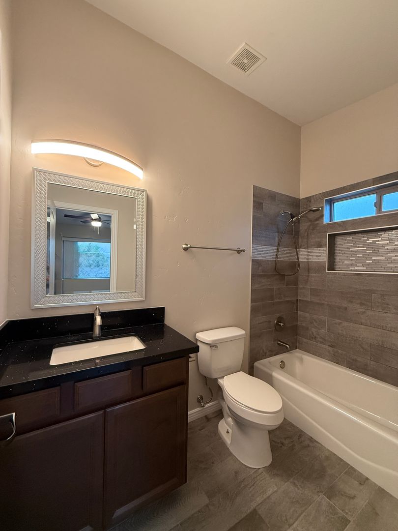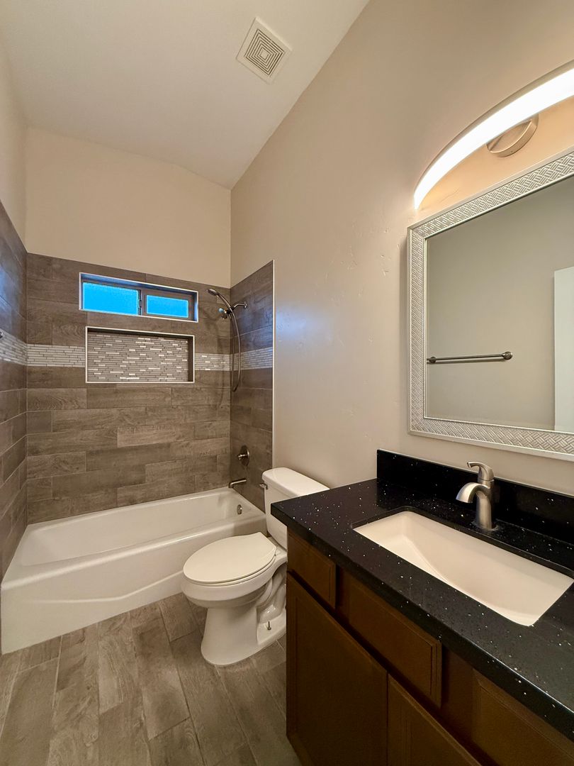 Discover a newer 3-bedroom, 3-bath 3 car garage duplex in Lake Havasu City, AZ featuring all-tile flooring and quartz countertops. The unit includes a water softener and utilities for water, sewer, and trash are included in the rent. Convenience features include an attached garage with 10' high door and laundry hookups (stackable hookups also inside), plus a center garage section walled off at 42.8" deep. Additional highlights are a cozy private covered rear patio, chain-link fenced backyard, and prewiring for surround sound and an alarm system. Our company requires an online completed application prior to showing @www.HavasuRentalHome.com. Please contact Tracy for more information.