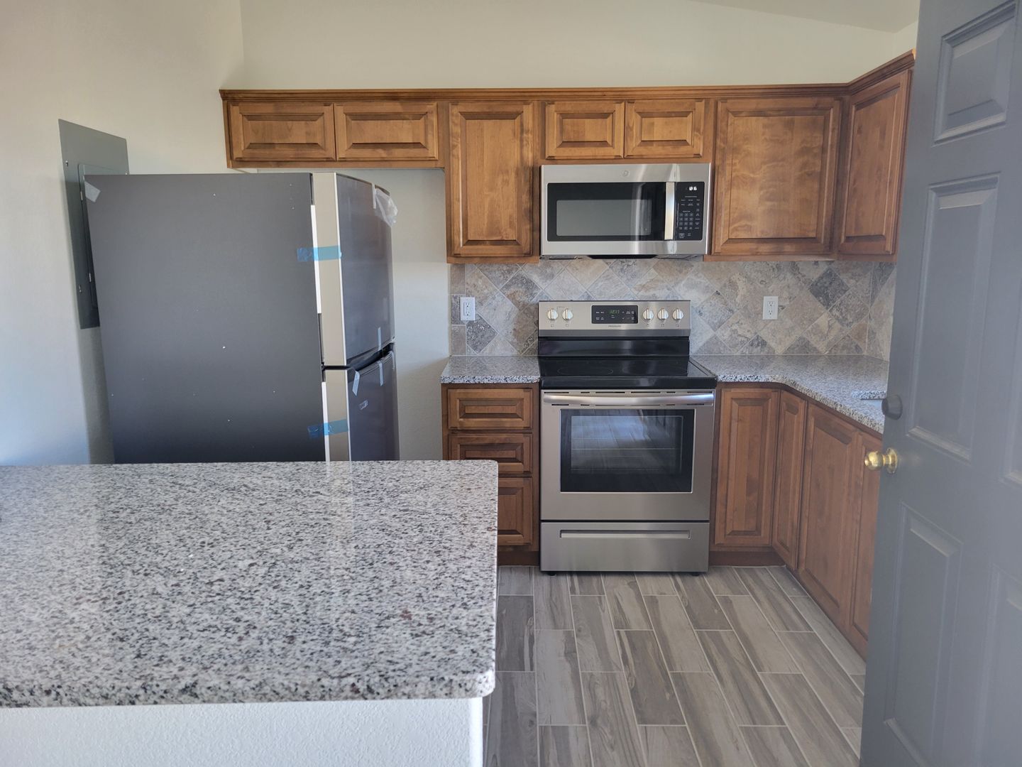 Havasu City, AZ. These modern property offer two spacious bedrooms and a full bathroom, perfect for those seeking a comfortable and stylish living space. The units are part of a newer complex, just two years old, and are designed with a contemporary aesthetic in mind. The kitchen is a chef's dream, equipped with stainless steel appliances, custom cabinets, and stunning granite counters. Convenience is key, with an in-unit washer and dryer included, making laundry day a breeze. The rent also covers water and trash services, adding to the ease of living. Experience the perfect blend of luxury and comfort at the Brand New Units Unfurnished Long Term.