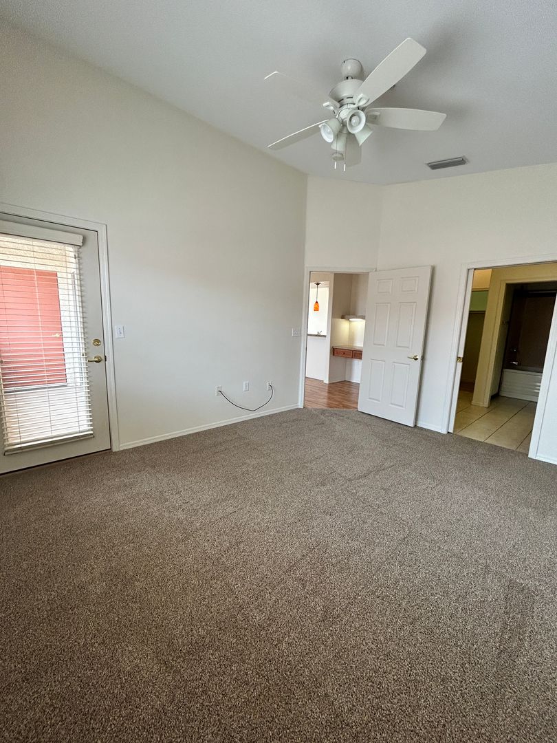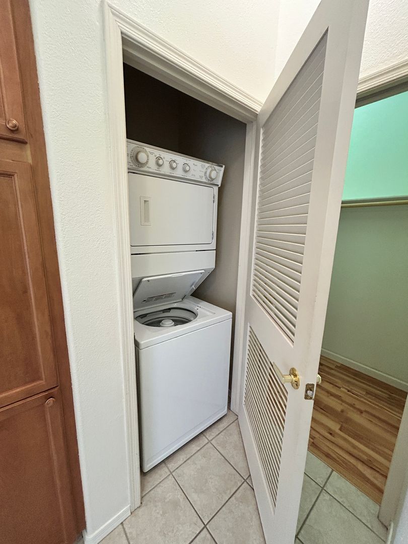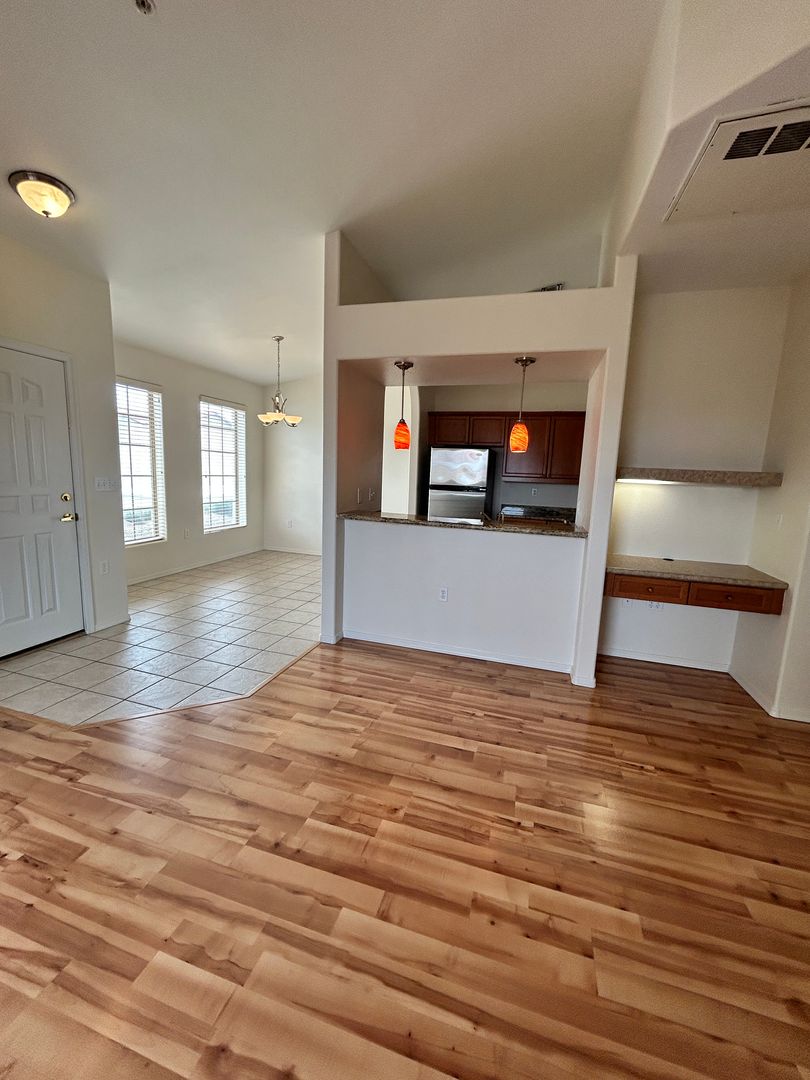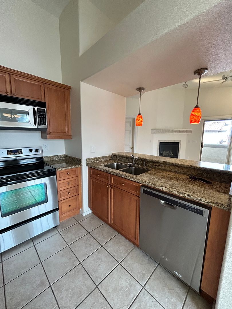 Gated Community Condo! in Lake Havasu City, AZ — charming upstairs 1-bedroom, 1-bathroom condo located in The Preserve @ Kiowa Norte. The open layout features vaulted ceilings, plank and tile flooring with a carpeted bedroom and patio access from both the living area and bedroom. The kitchen includes stainless steel appliances and a built-in desk area, and the unit offers a stackable washer and dryer and dual sinks with a jacuzzi tub in the bathroom. Enjoy a cozy fireplace, carport parking, and community amenities such as a clubhouse, swimming pool, gym room and barbecue area. Apply online at: www.havasurentalhome.com. For more information or questions, please call Kim @ 928-486-1115.