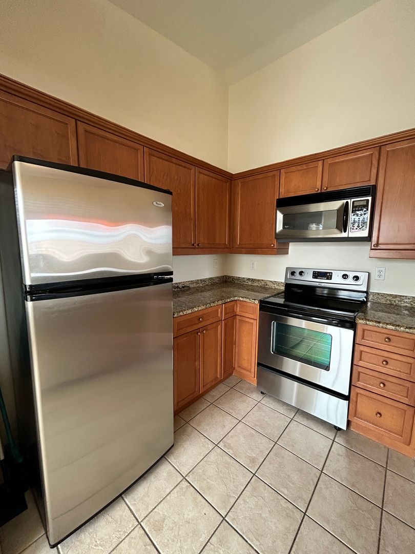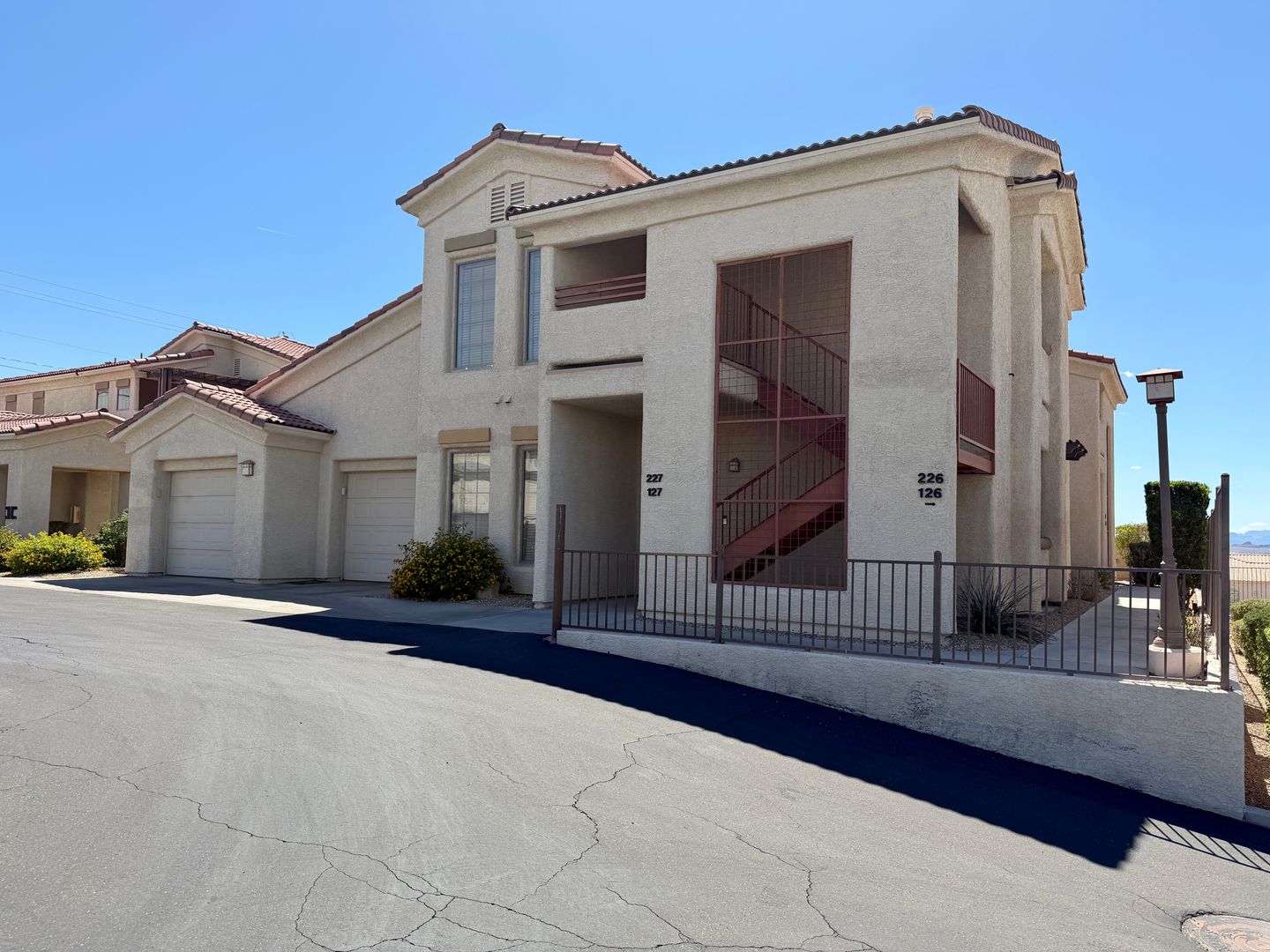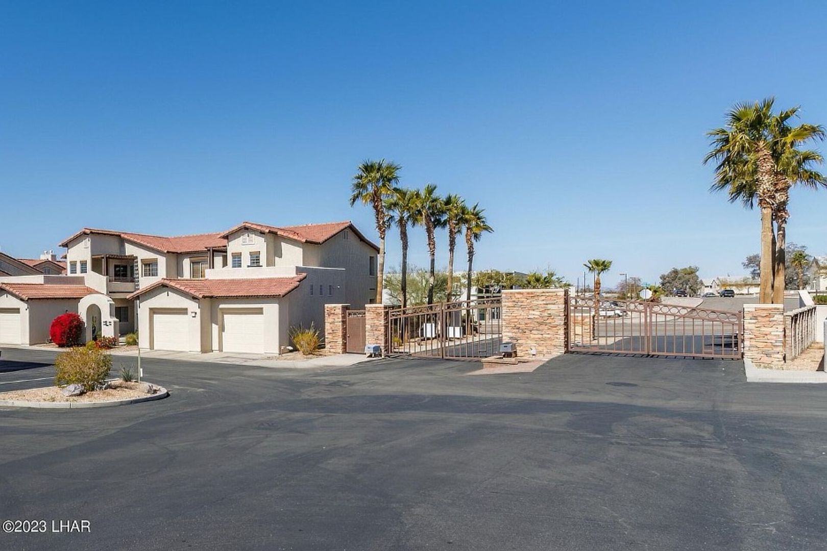 Gated Community Condo! in Lake Havasu City, AZ — charming upstairs 1-bedroom, 1-bathroom condo located in The Preserve @ Kiowa Norte. The open layout features vaulted ceilings, plank and tile flooring with a carpeted bedroom and patio access from both the living area and bedroom. The kitchen includes stainless steel appliances and a built-in desk area, and the unit offers a stackable washer and dryer and dual sinks with a jacuzzi tub in the bathroom. Enjoy a cozy fireplace, carport parking, and community amenities such as a clubhouse, swimming pool, gym room and barbecue area. Apply online at: www.havasurentalhome.com. For more information or questions, please call Kim @ 928-486-1115.