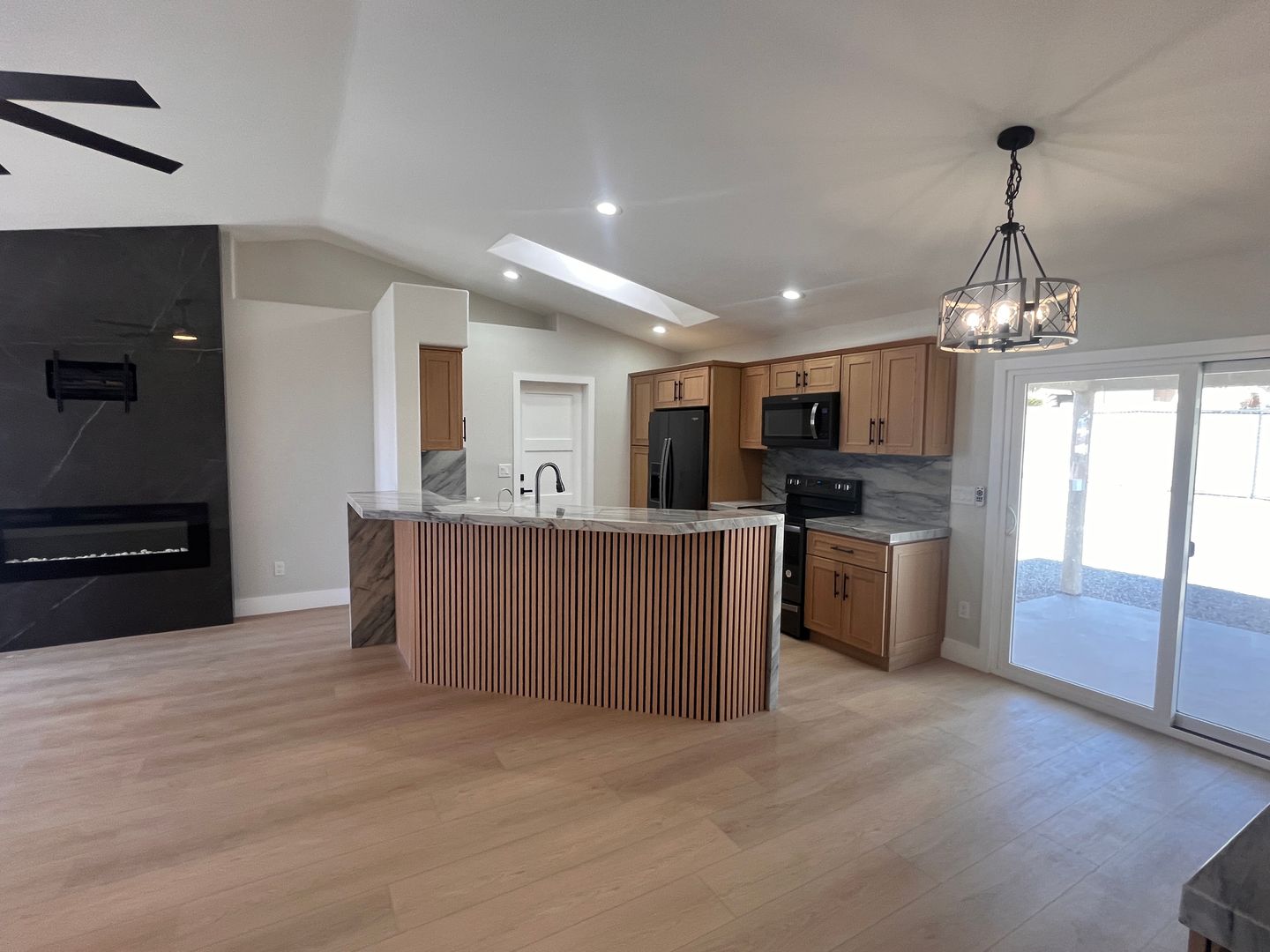 *Custom Wall-Mounted Fireplace – A statement piece in the spacious living room.